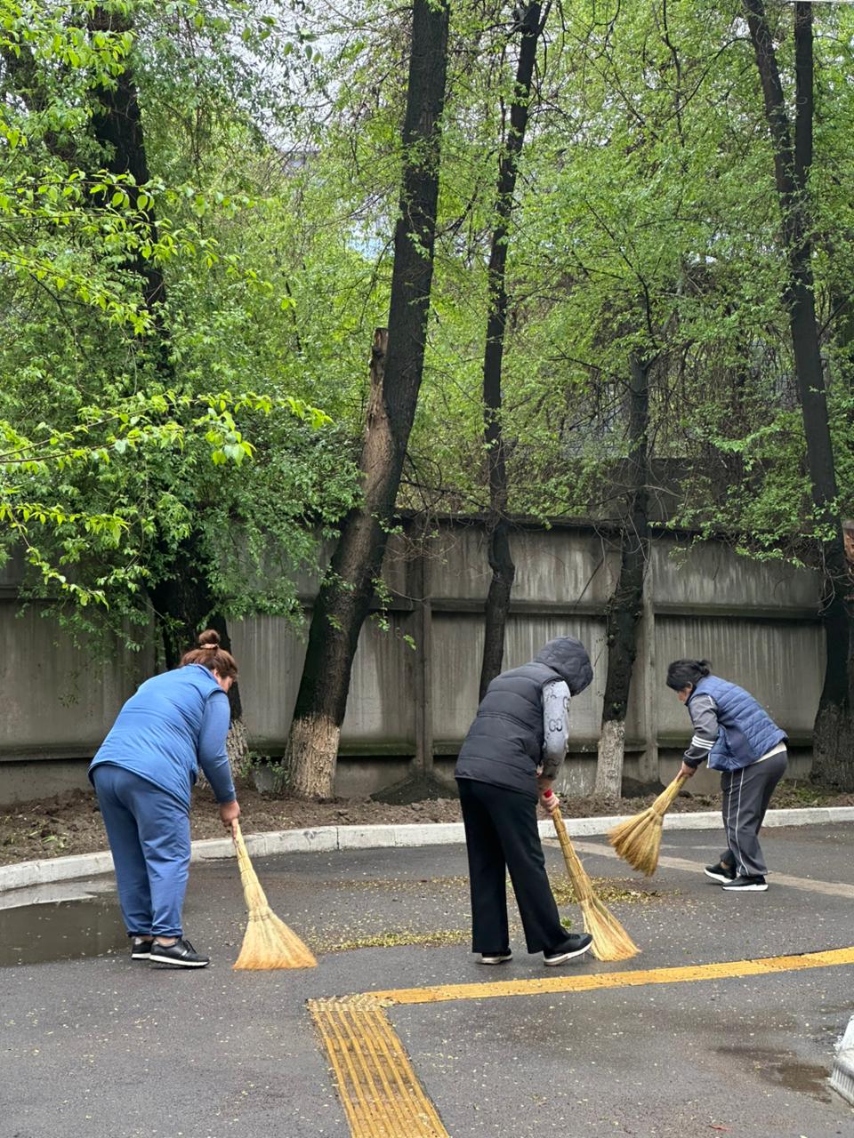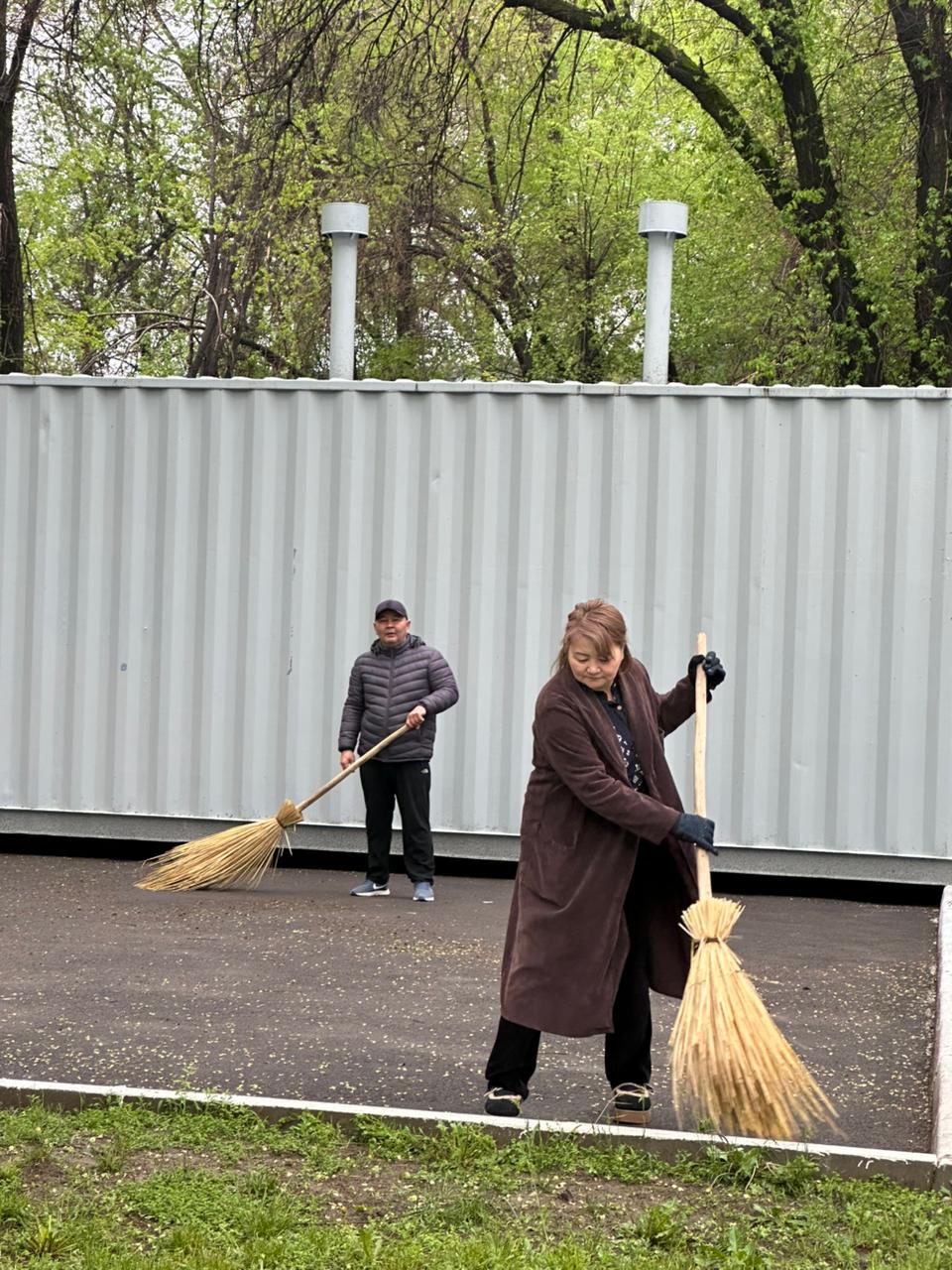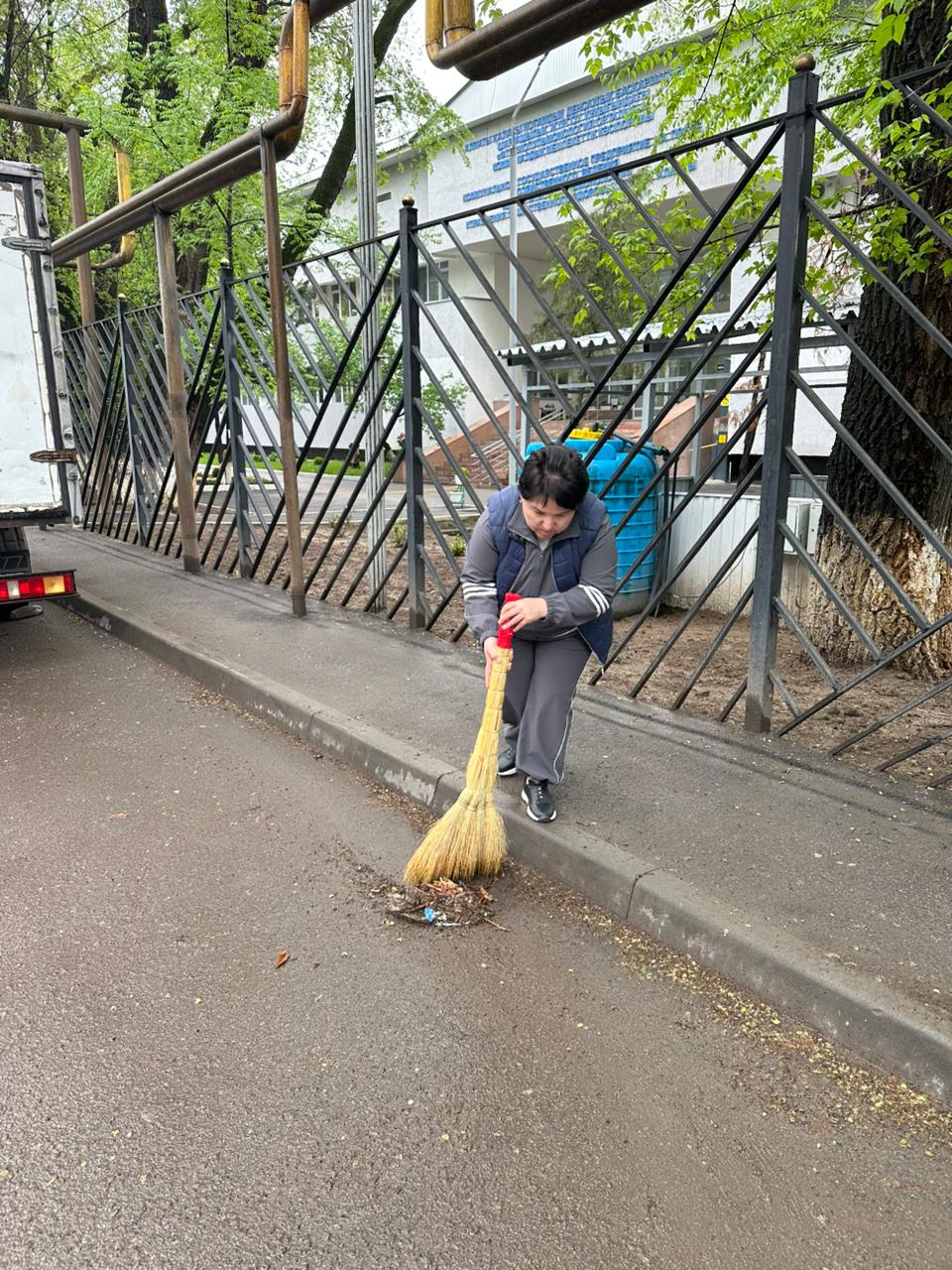 Сенбілік аясында орталық ұжымы мекеме аумағын тазалау жұмыстарын жүргізді: аумақ қоқыстан тазартылып, жасыл желектер ретке келтірілді, ағаштар.